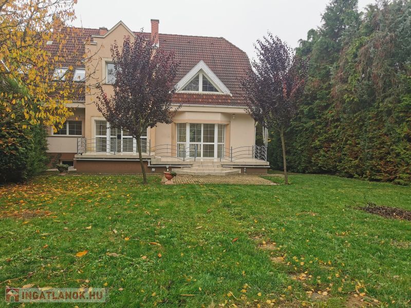 Gondozott nagy sík kertben családi ház, az alsó szinten uszodával, tágas 64 nm-es kertkapcsolatos nappalival, 5 szobával.