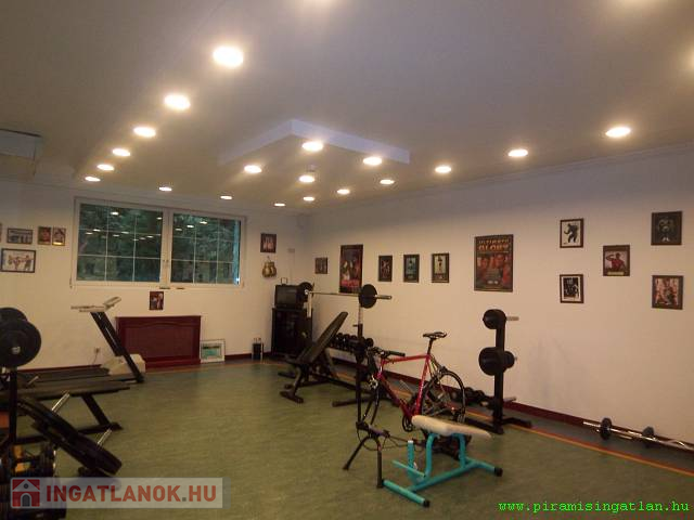 * földszint: Örhelyiség, 2 egyállásos és 1 dupla garázs, folyosó, technikai helyiségek, öltöző, mosdó, tanácsterem, 3 szoba, konyha, WC, kondi terem.