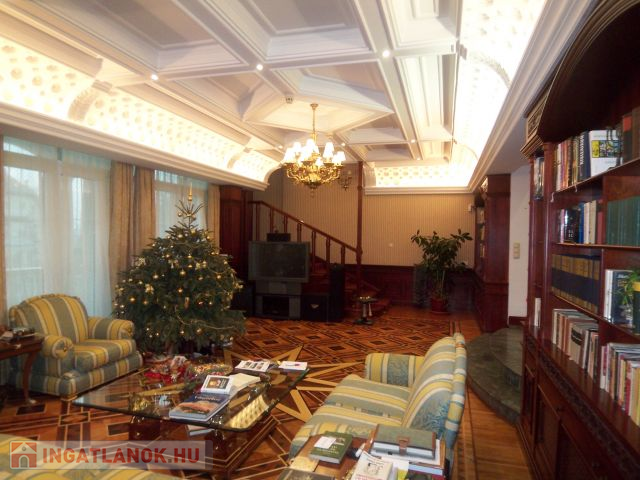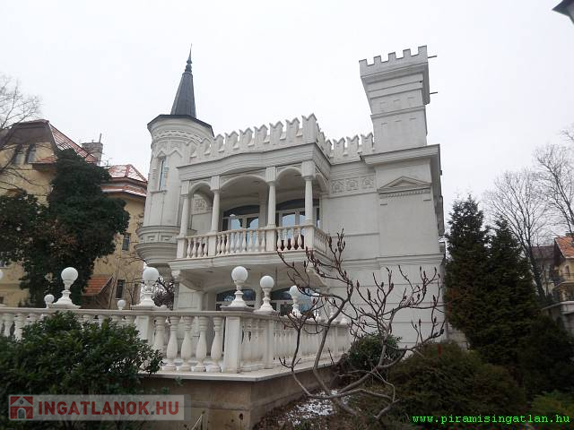 Rózsadomb szívében legnemesebb anyagokból épült kis kastély intarziás parkettával,Andy Tarton nemesfa ajtókkal és a régi kastélyokra jellemző kazettás fa falburkolattal, márvány és gránit vizes helyiségekkel, shindler hidraulikus lifttel, fan-coil központi hűtő fütő rendszerrel, sok nagy terasszal eladó