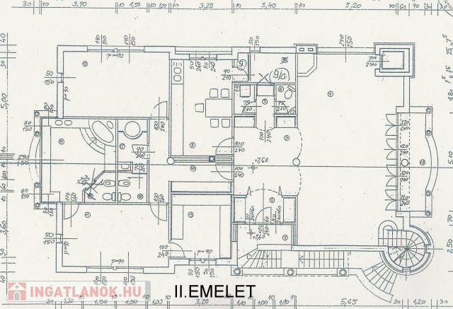 * emelet: fogadó helyiség, 5 szoba, mellékhelyiségek, nagy terasz.