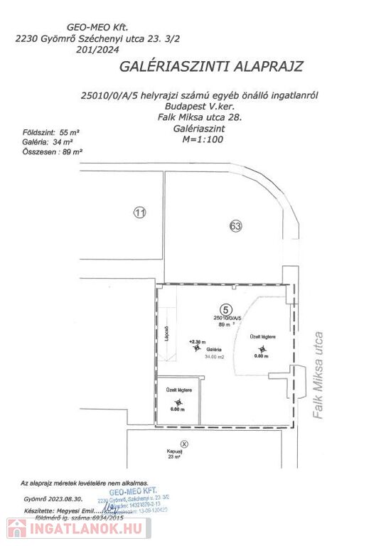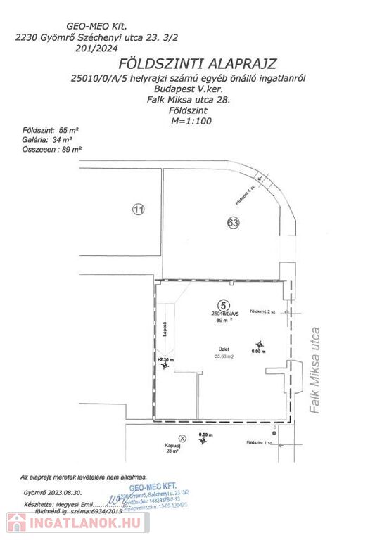 * Földszint 55 m2: ; belmagasság: 5.50 m