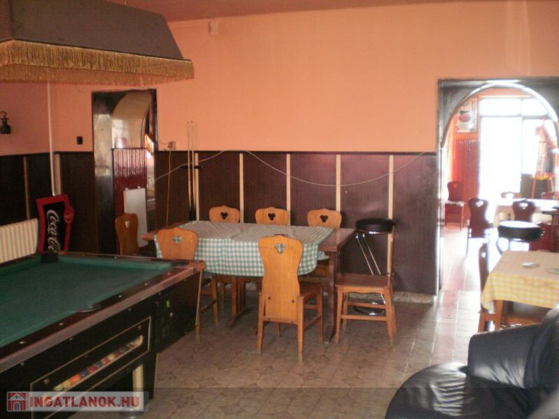 * födsznt 164 m2: Kiszolgálótér,bárpult bárszékekkel,biliárdterem, különterem, 2 raktár, külső raktár,mellékhelyiségek, személyzeti wc, pince.; belmagasság: 2.80 m